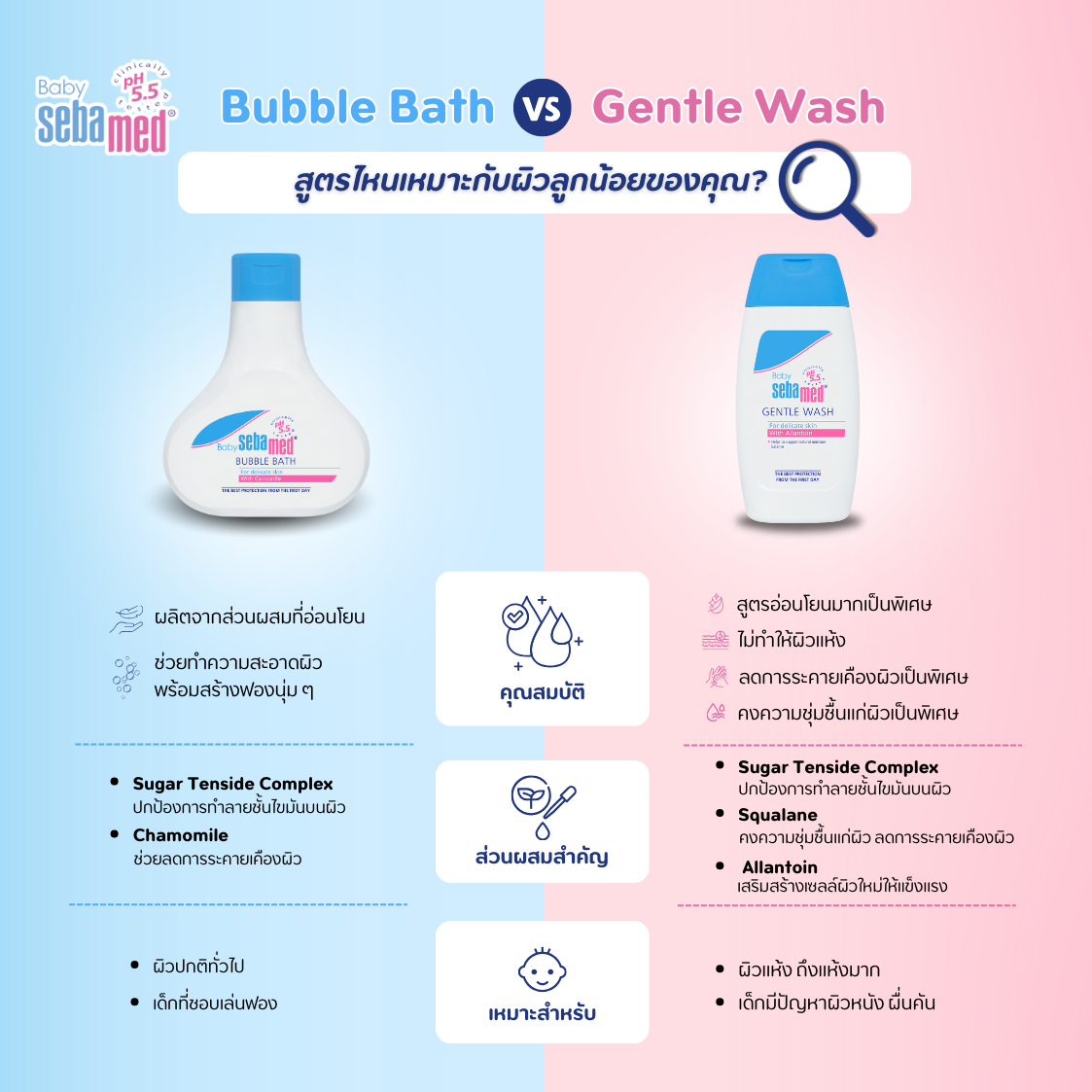 อย่างที่ทราบกันดีว่าการเลือกครีมอาบน้ำเด็กให้เหมาะสมกับผิวของเด็กเป็นสิ่งสำคัญสำหรับคุณแม่มือใหม่ เพราะผิวของเด็กเล็กนั้นบอบบางและต้องการการดูแลเป็นพิเศษ ในบทความนี้ เราจะมาดูความแตกต่างระหว่างครีมอาบน้ำเด็ก 2 สูตรจากแบรนด์ Baby Sebamed ได้แก่ Baby Sebamed Gentle Wash และ Baby Sebamed Bubble Bath เพื่อให้คุณแม่สามารถเลือกผลิตภัณฑ์ที่ดีที่สุดสำหรับลูกน้อยของคุณ