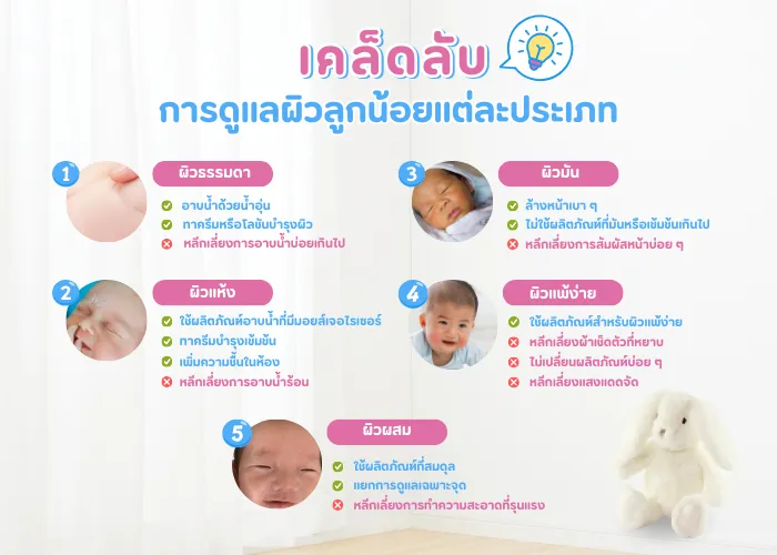 เคล็ดลับการดูแลผิวลูกน้อยแต่ละประเภท