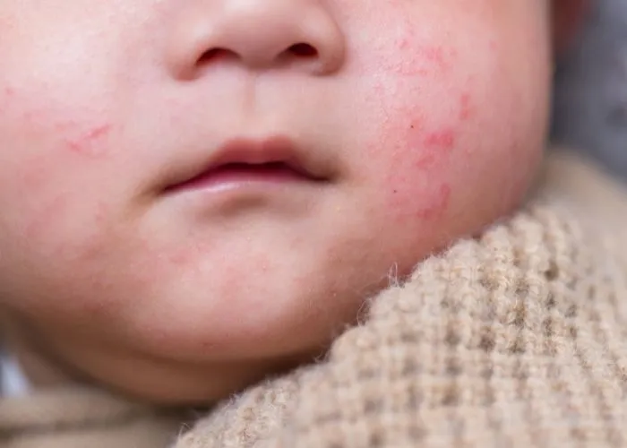 ผื่นร้อน หรือ ผดร้อน เป็นอาการระคายเคืองผิวหนังที่เกิดจากเหงื่ออุดตันในรูขุมขน มักพบในบริเวณที่มีต่อมเหงื่อมาก เช่น ใบหน้า คอ และข้อพับ อาการที่พบบ่อยคือ ผื่นแดง มีตุ่มใสเล็ก ๆ และทำให้เด็กรู้สึกคันหรือไม่สบายตัว