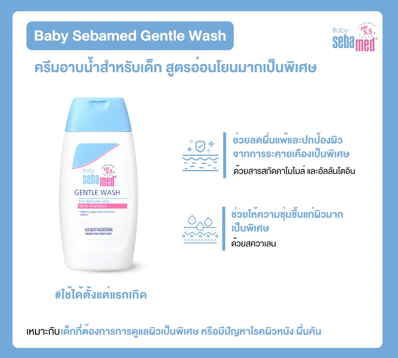 เลือก Baby Sebamed Gentle Wash และ Baby Sebamed Body Milk สำหรับการดูแลผิวบอบบางของลูกคุณวันนี้!