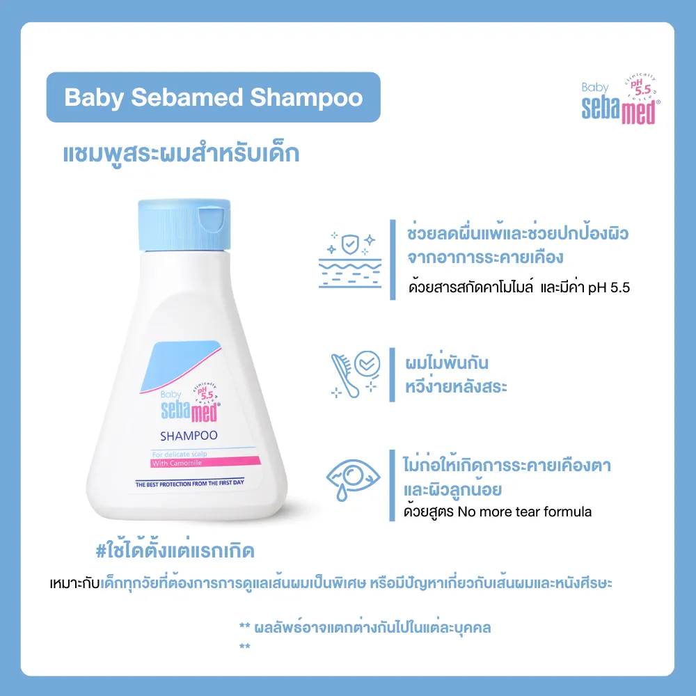 ด้วยการใช้ Baby Sebamed Shampoo แชมพูสูตรอ่อนโยนพิเศษ (Extra Mild) ที่ช่วยชะล้างมลภาวะออกจากหนังศีรษะลูกน้อยได้อย่างหมดจด สระง่าย ไม่แสบตา และช่วยให้เส้นผมนุ่มสลวย ไม่แห้งกระด้างจากสารเคมีหรือฝุ่นควัน