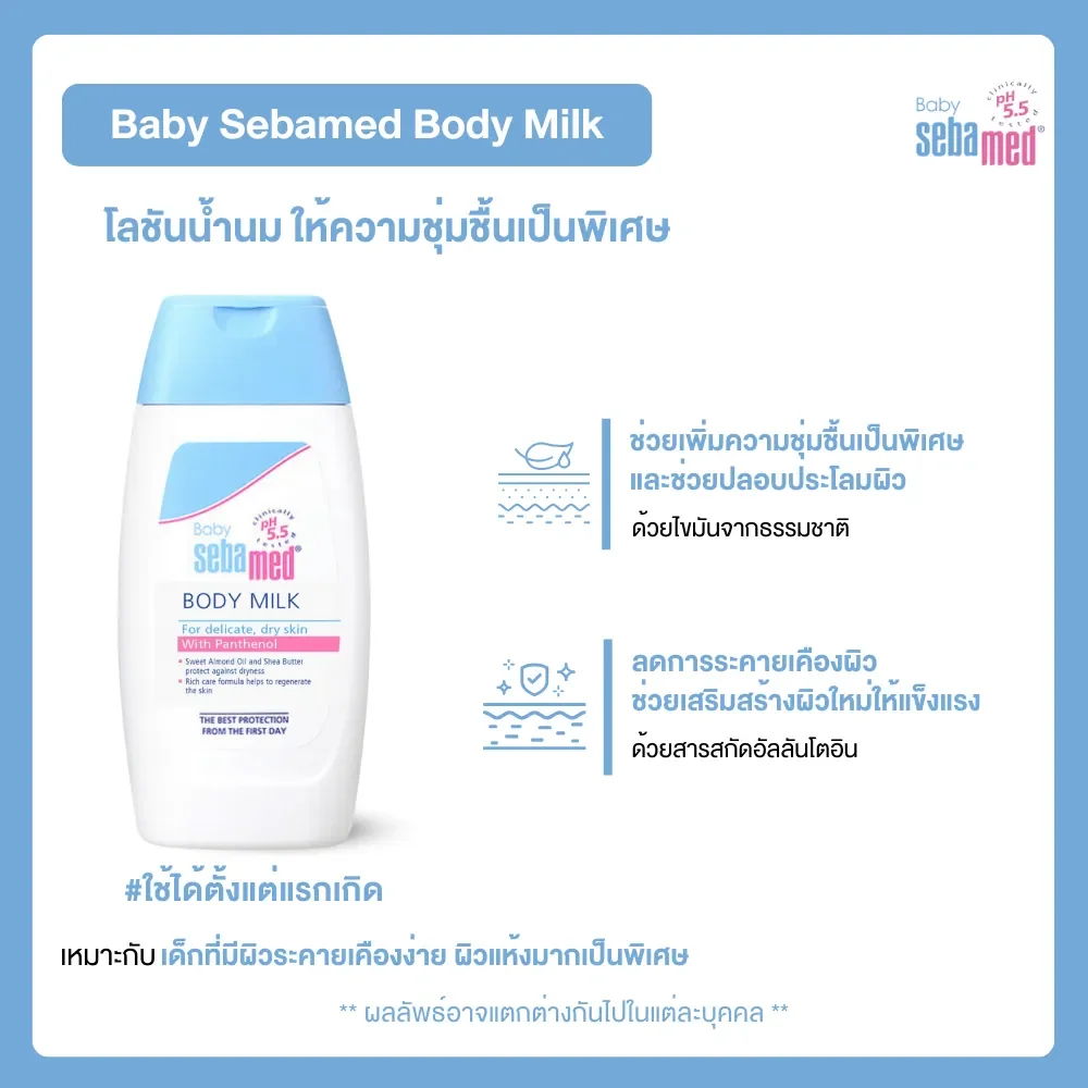 โลชั่นน้ำนมบำรุงผิวกายถนอมผิว สำหรับเด็กที่ผิวแห้งถึงผิวแห้งมาก ช่วยเพิ่มความชุ่มชื่นและปรับสมดุลของแผ่นฟิล์มคุ้มกันผิวตามธรรมชาติ เพิ่มความยืดหยุ่นให้กับผิว